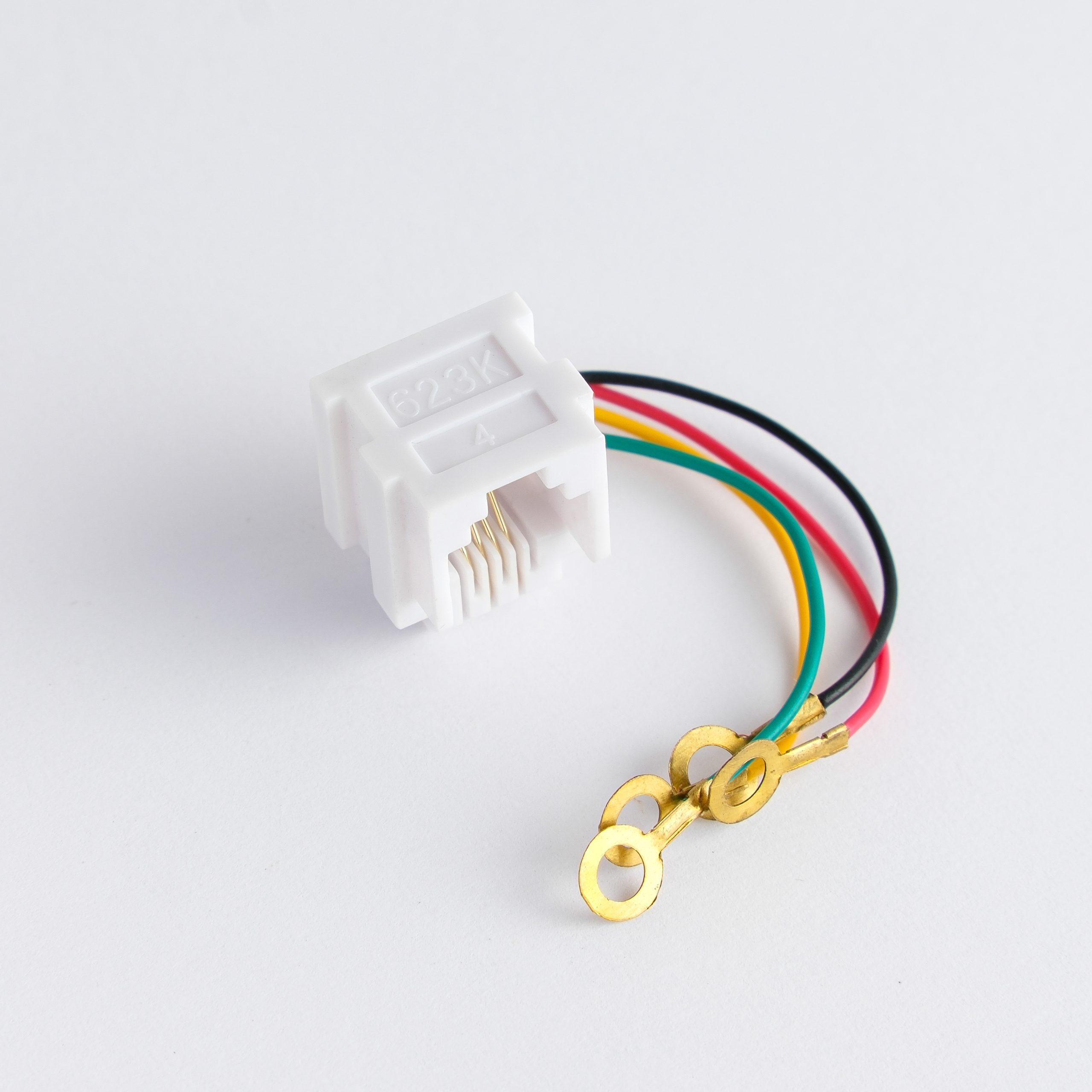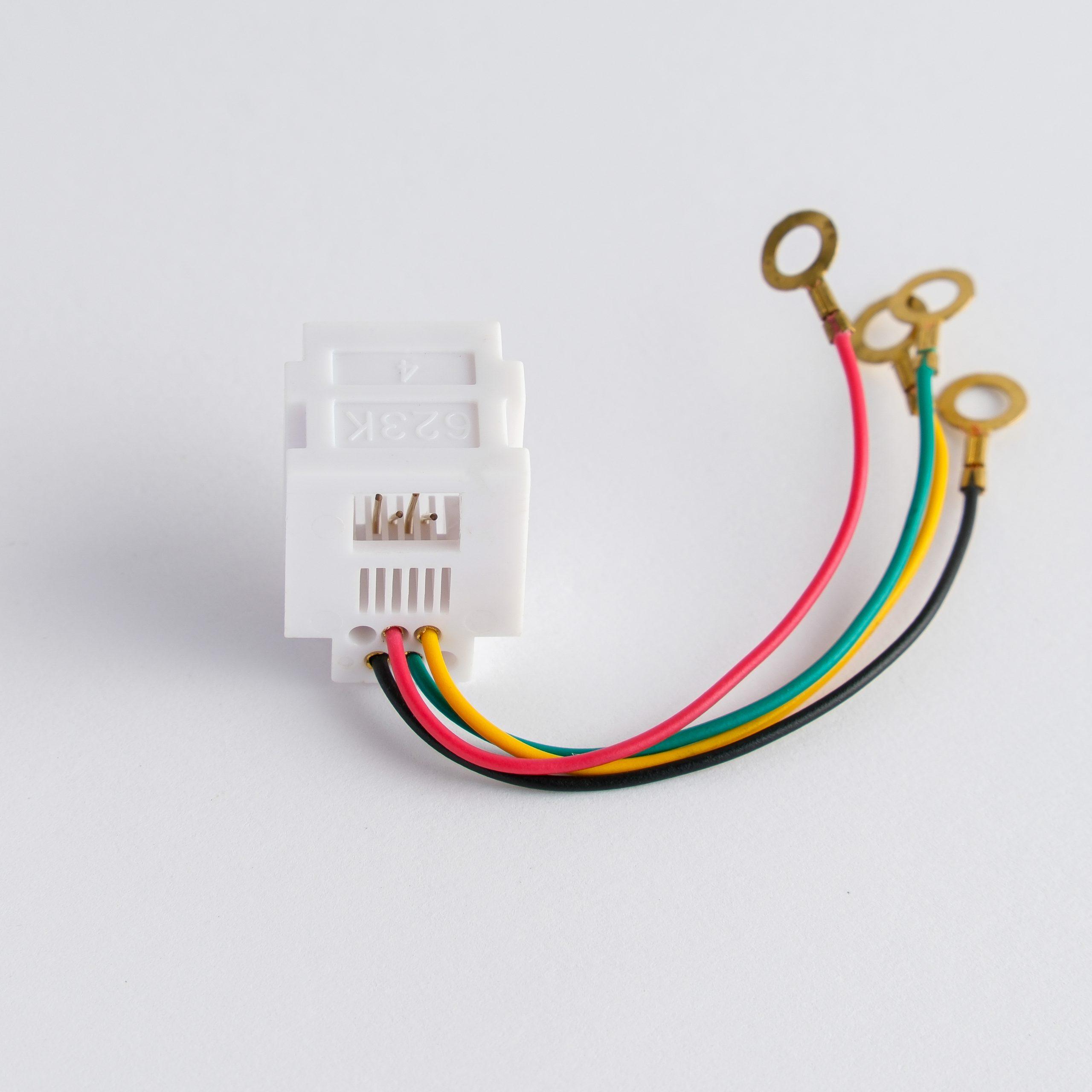 Telefon hatları için kullanılan 623K tip numeris jack. 6P/4C yapısıyla (6 pin, 4 kontak) uyumludur. Telefon santralleri (PABX), priz bağlantıları ve dahili hat tesisatlarında güvenilir bağlantı sağlar. Renkli kablolar sayesinde montaj kolaylığı ve doğru hat eşleştirmesi sunar.