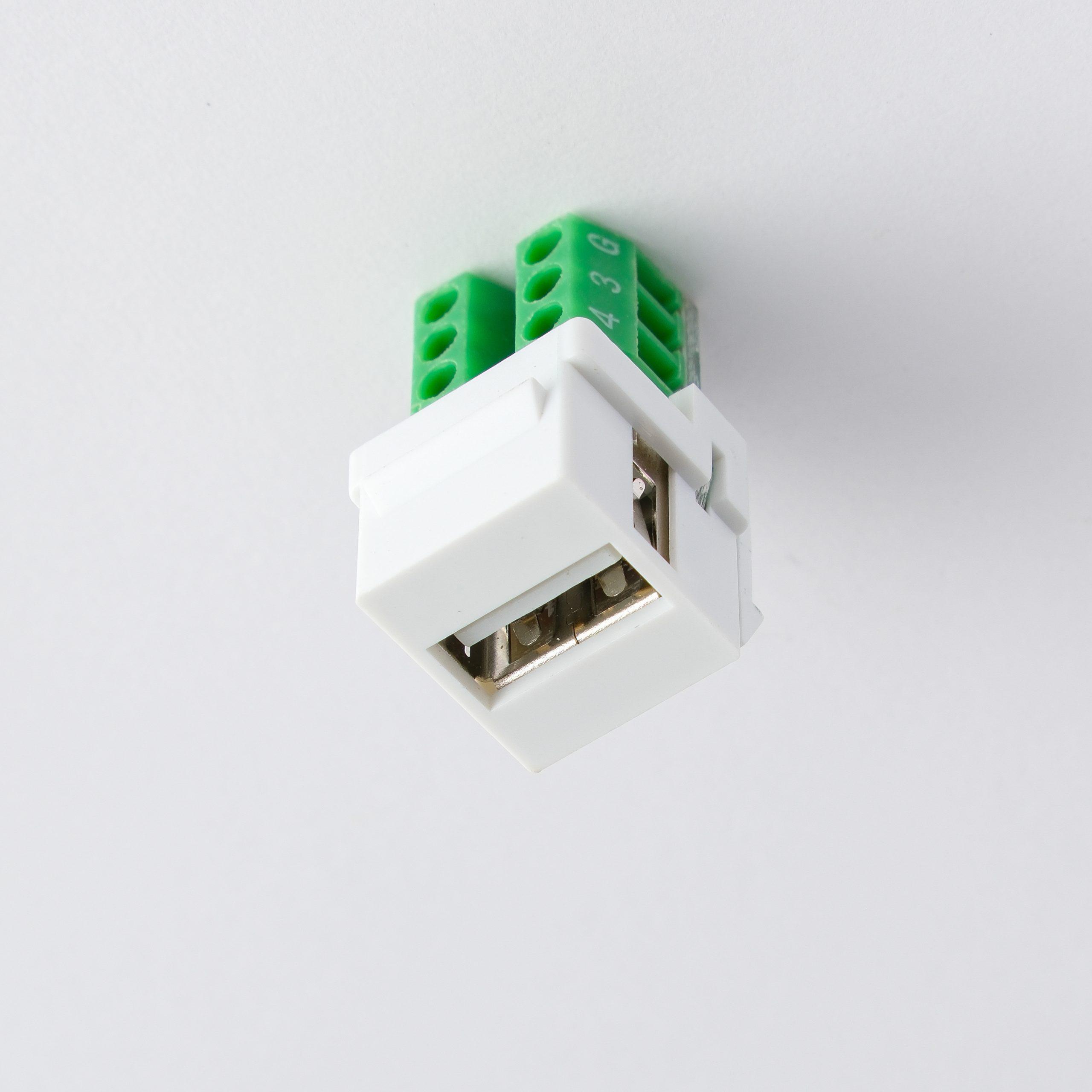 USB sinyallerini terminal blok bağlantısı üzerinden iletmek için tasarlanmıştır. Modüler yapısı sayesinde dağıtım panelleri, prizler ve kasetlerde kolayca kullanılabilir. Klemensli bağlantı özelliği sayesinde lehim gerektirmeden hızlı ve güvenilir montaj imkânı sunar.